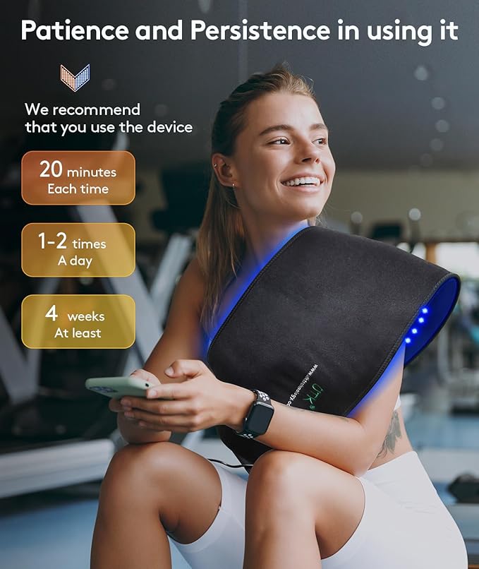 - 36" X 11" FULL BACK COVERAGE: The larger size of red light therapy blanket provides a wider coverage area, comes with adjustable straps and can be worn around the back, waist, shoulders, abdomen, legs, hips, knees, etc. Compared to the high costs and limited professional therapy, this device offers a more affordable and convenient way to enjoy the benefits of light therapy anytime, anywhere.