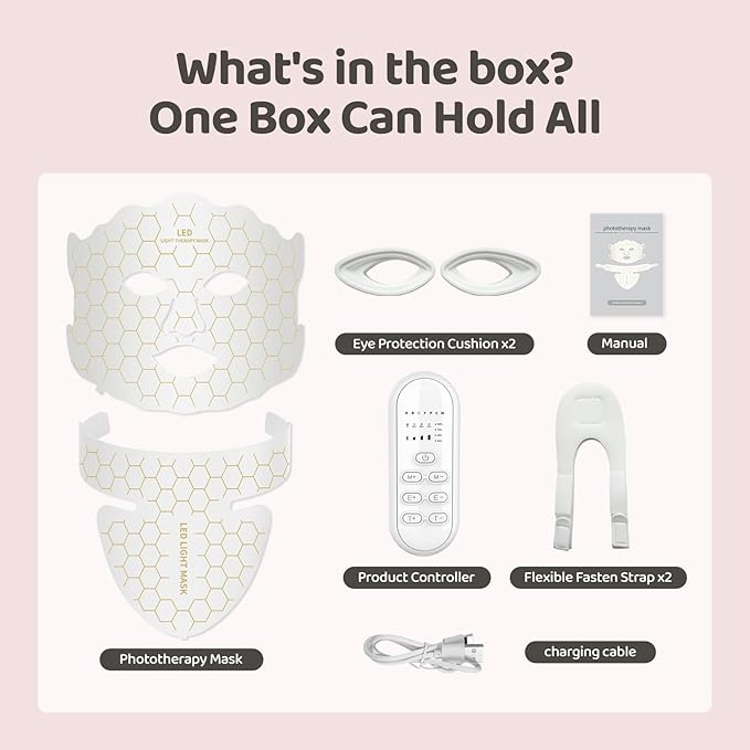 - Convenient and User-Friendly: Our mask is designed with ease-of-use in mind. You can switch the color, intensity and time with the remote control. It only takes 15-25 minutes a day and is super easy to use.
