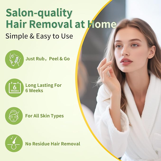 - 【No Tools, No Heat – Ready in 10 Seconds】 Simply warm the strip between your palms for 10 seconds to activate the adhesive, apply, wait 3 seconds, then peel off in the opposite direction of hair growth — salon-smooth results at home, no wax warmer needed.