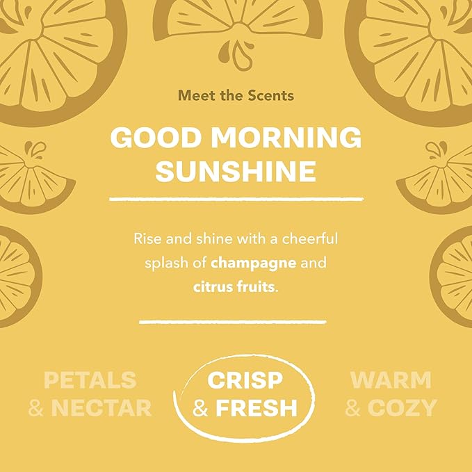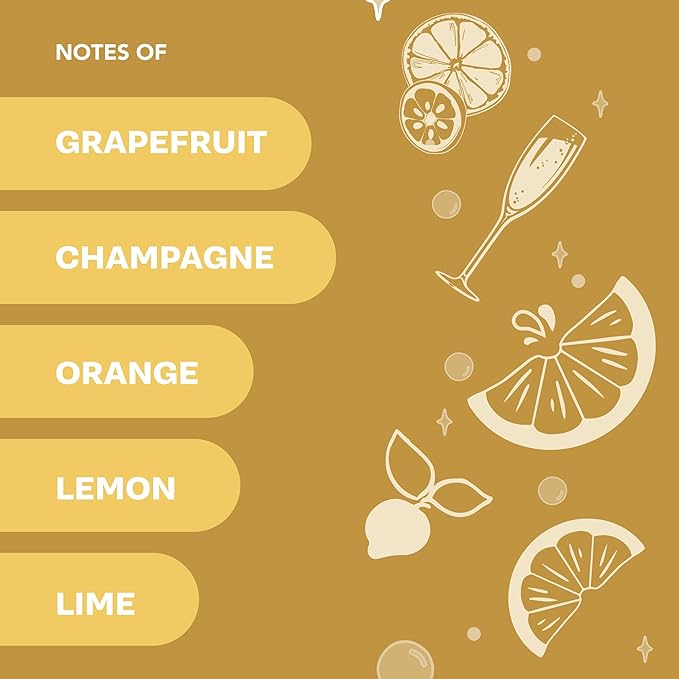- Champagne Citrus Energy - Start your morning bright with this fizzy blend of sparkling champagne and juicy citrus fruits, a cheerful and energizing fragrance that awakens the senses and puts sunshine into every step of your day.