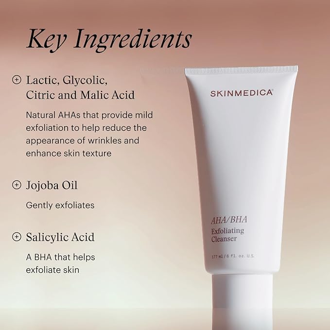 SkinMedica AHA/BHA Exfoliating Face Wash (NEW PACKAGING),Gentle Facial Exfoliating Scrub with Jojoba Oil for Smoother, Radiant Skin - Helps Improve the Appearance of Skin Tone & Texture (6 Fl Oz)