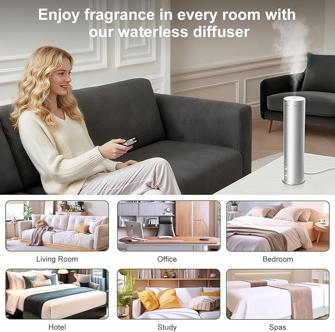 - Powerful Coverage up to 1000 Sq Ft – Designed for large rooms, this scent diffuser is perfect for spaces such as living rooms, bedrooms, studies