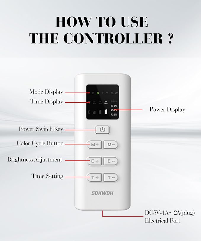 - Convenient controller design: Use the remote control to switch the desired color, time and light intensity at will. You only need to charge the remote, and once it's attached to the mask, it can be used anywhere.