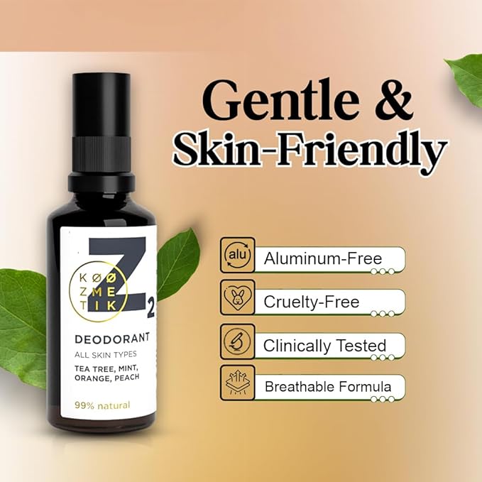 Z2 Natural Deodorant Spray For Women & Men | 99% Natural, Aluminum-Free & Cruelty-Free | Mint, Orange, Peach | Long-Lasting & Gentle Odor Protection | 50 ml (1.7 oz)
