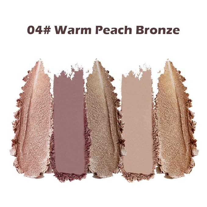 - Warm Peach and Bronze Tones:A curated blend of warm peach shimmer, soft beige, and bronze-brown tones suited for natural warm looks