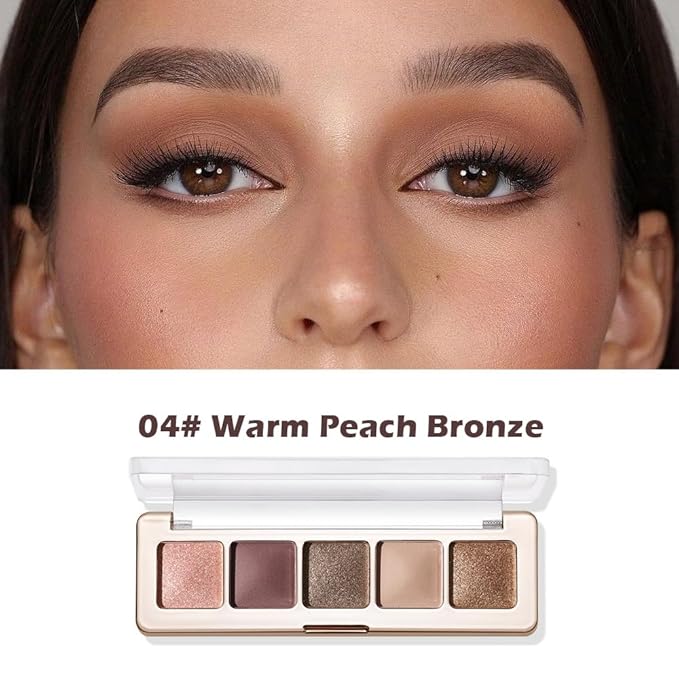 Warm Brown Nude Eyeshadow Palette 5 Colors Peach Pink Shimmer and Matte Brown Highly Pigmented Long Lasting Blendable Bronze Neutral Eyeshadow for Natural Daily Makeup, 4#