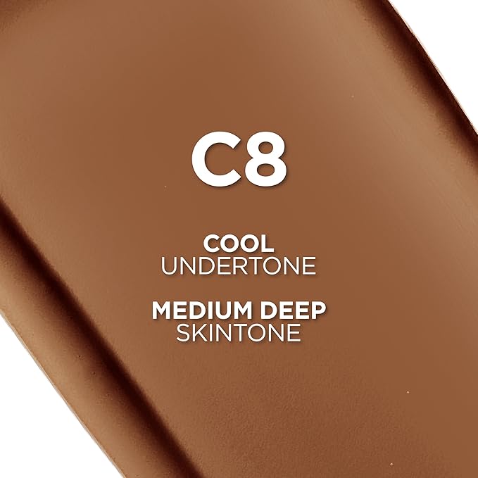 L'Oreal Paris True Match Super-Blendable Foundation, Medium Coverage Liquid Foundation Makeup, C8, Medium Deep, 1 Fl Oz (Pack of 2)