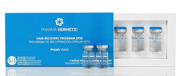 Pharma Hermetic Hair Growth Serum SP55, Professional 7 Week Hair Regrowth Kit, Scalp Serum For Thinning Hair with Biotin, Caffeine and Peptide Complex for Women and Men, Hair Serum (5x5mL)