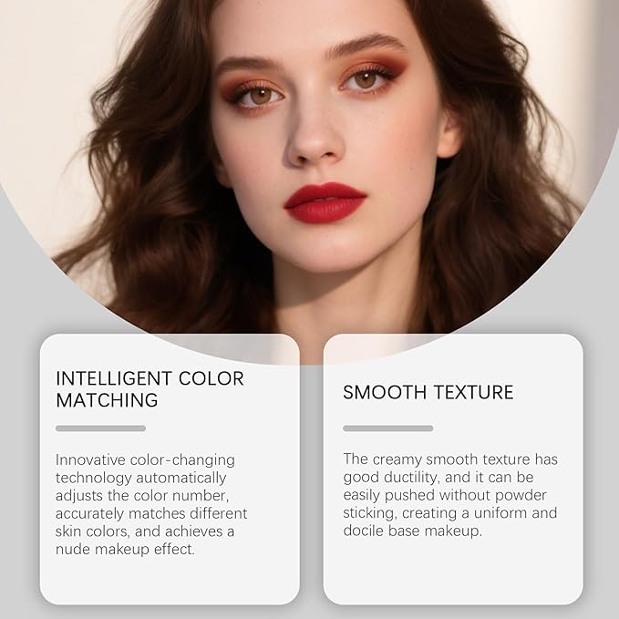 - ✨【Long-Lasting Wear & Precise Application】Experience 24-hour wear with our innovative cushion foundation. The unique skin-friendly elastic bionic film allows you to press out a perfectly even and smooth application every time. It brightens your skin tone, expertly hides imperfections like blemishes and pores, and remains comfortable, breathable, and non-comedogenic all day.